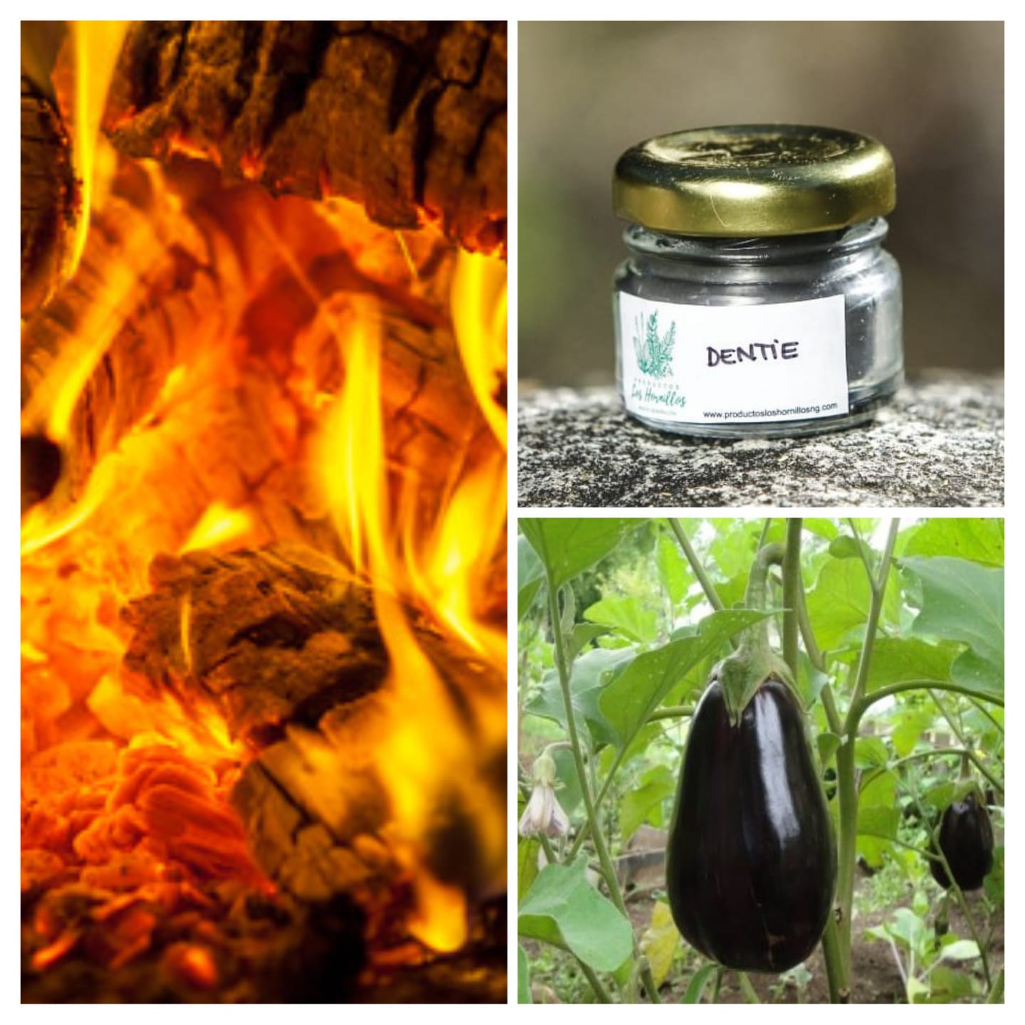 Polvo de berenjenas carbonizadas finamente molidas. Utilizado como tratamiento externo en problemas de encías, como gengivitis o peridontosis. Se coloca el polvo en el cepillo dental seco y se masajean las encías en forma circular durante 3 minutos, para luego, una vez integrado a la saliva, pasarlo también por nuestros dientes completando la higiene diaria. |
